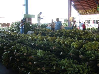 市場の中のバナナ売り場