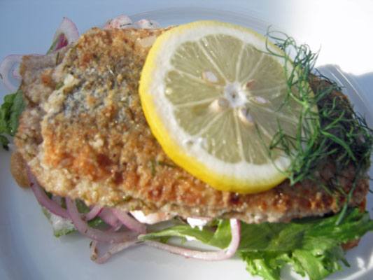 南蛮漬けみたいに、焼いたもニシンを甘すっぱいタレにつけたものを、オープンサンドの上にどーんとのせています。