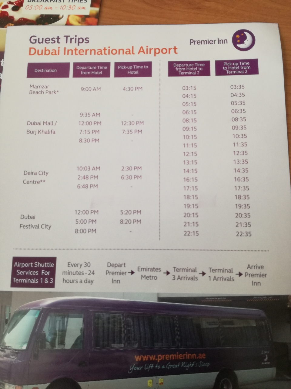 地下鉄の一日券は22AEDですので、それを買ってドバイモールやマリーナにアクセスできます。空港からはホテルの無料シャトルバスが出ているのでそれでホテルまで戻れます。