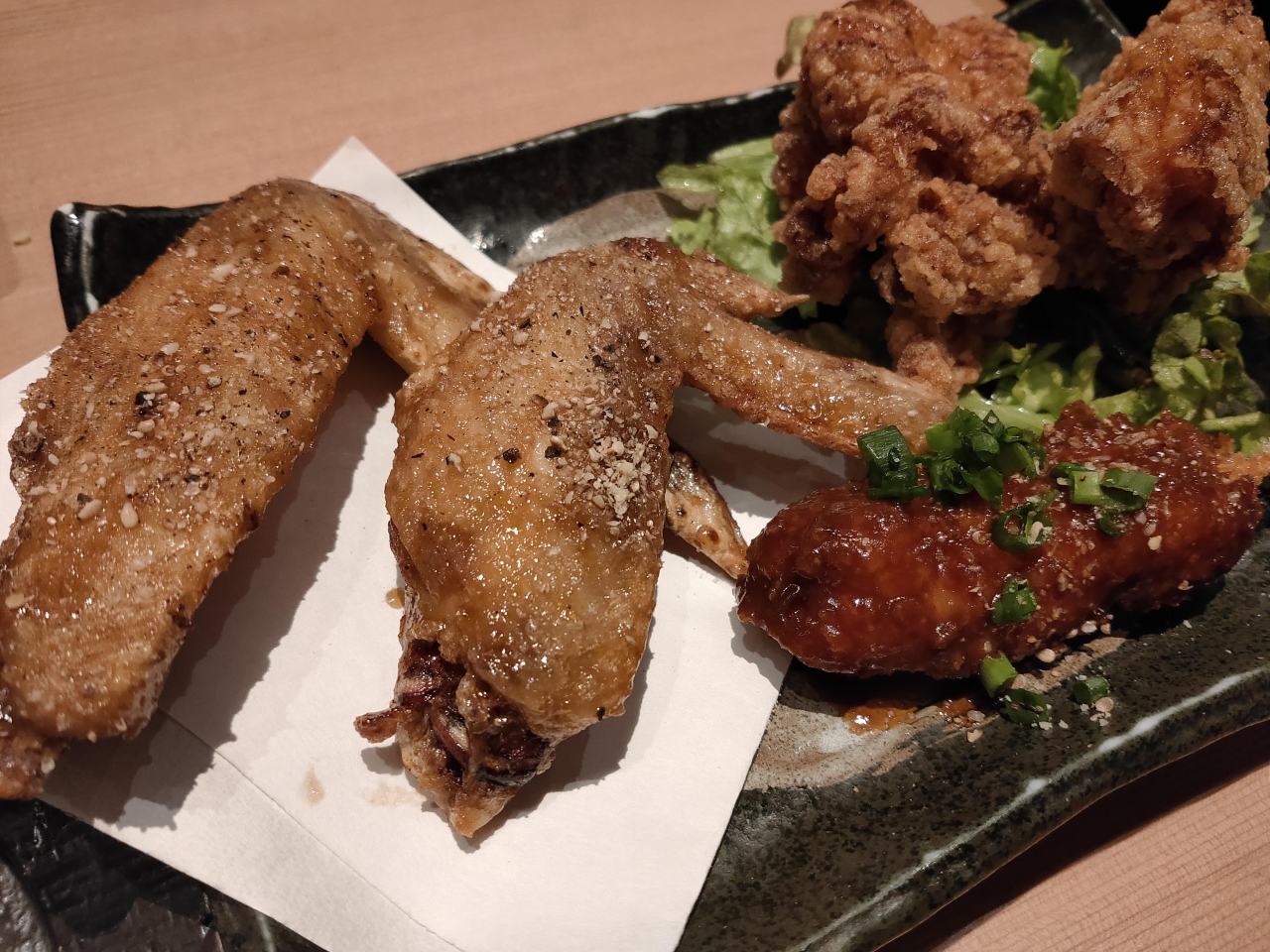 なんと出張者にうれしい「おひ鶏さまセット」というのがあります。手羽先食べ比べ、から揚げ等6品で1600円。これをベースに頼んでいくと良いでしょう。