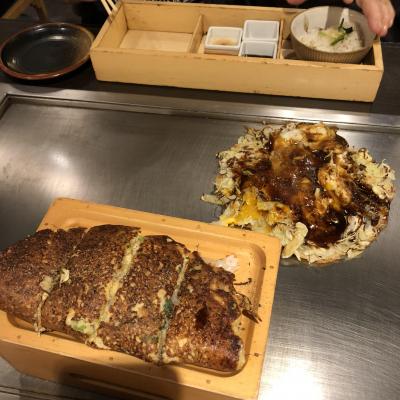 お好み焼きやぎゅんた焼きはエビか豚かと中の具材を選べます。