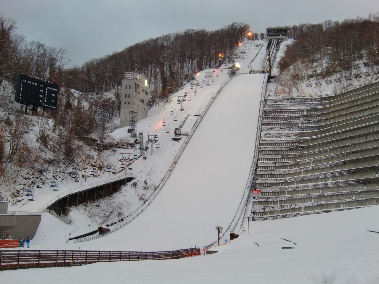 冬場に大倉山のシャンツェを上から観たいと思っていたので、地下鉄の円山公園駅からタクシーで行きました。円山公園駅にあるバスセンターからバスも出ていますが、バス停から坂道をけっこう歩くのでタクシーにしました。夏場ならバスにしても良かったかなー。さて、2人乗りリフトに乗って展望ラウンジに行って上からシャンツェを観ましたが、急勾配のアプローチを観ると驚きます。また、標高300mから札幌の市街地が一望できます。ちょうど行った日はたまたま何人かの選手が練習をしていて、実際に飛ぶのを観る事ができました。非常にラッキーでした。90キロ近いスピードで飛んでいくというのか落ちていくというのか、とにかく怖すぎる競技です。下りのリフトで多分ですが原田雅彦コーチが昇っていくのが見えました。これも大変ラッキーでした。それと、ウインタースポーツミュージアムがおもしろかったです。札幌オリンピック関連の展示を見たり、実際にウインタースポーツを体験できる施設です。そうそう、ここも中国からの観光客で一杯でしたね。