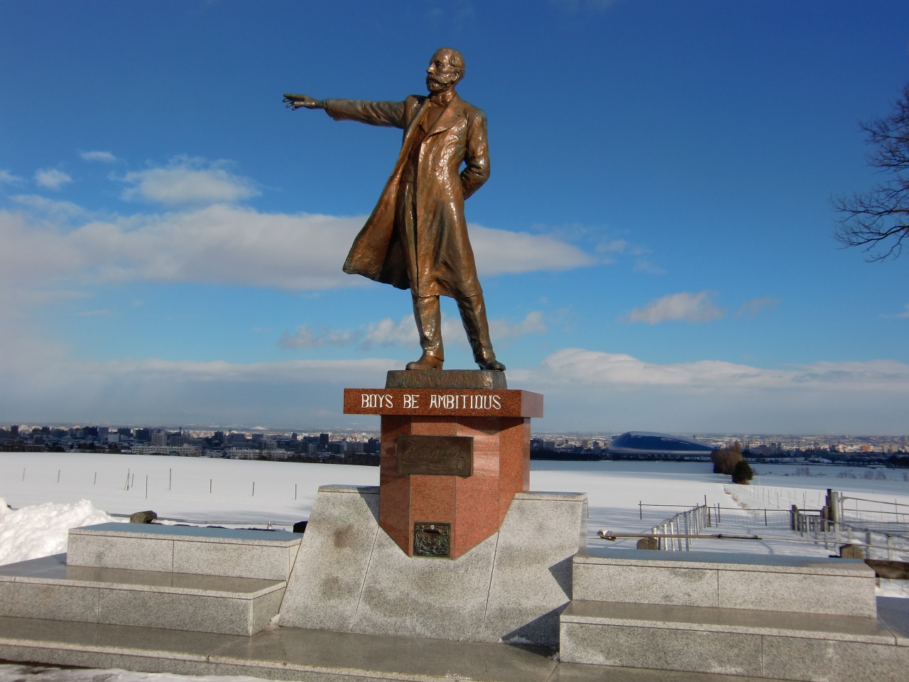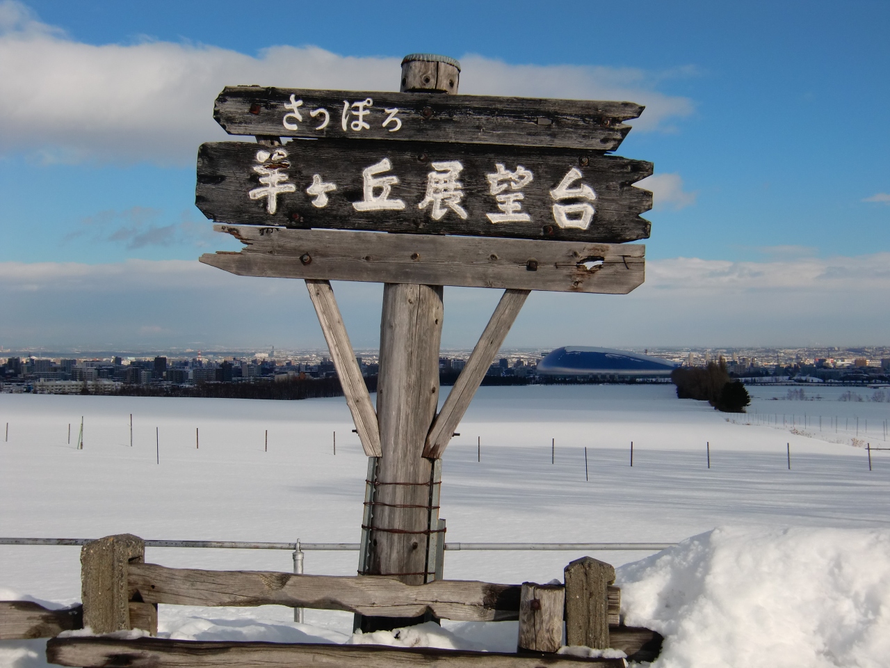 雪の羊ケ丘に行ってみたくなって行きました。地下鉄東豊線福住駅からバスで約10分ですが、平日は1時間に2本、休日は3本なので時間に注意です。羊ケ丘に着いた時に帰りのバスの時間を見ておいた方がいいです。さて、有名なクラーク像の前では係りの人が無料で写真を撮ってくれます。自分のカメラでも撮ってくれます。撮ってもらった写真は無料でいただけますが、大判がほしい人はその分は有料になります。写真を撮る時の掛け声は「クラーク」です。もちろん、右手は上げましょうね。冬の羊ケ丘は草原は真っ白の雪でとてもきれいです。クラーク像の後方には札幌ドームが見えます。ヒツジは建物内に入っています。毛は黒ずんでいてきれいではありません。これを黒執事と言います。冗談はさておき、観光客は少ないのですが、雪の羊ケ丘は行ってみるべきですよ。