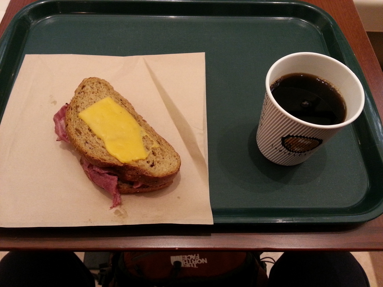 札幌観光ツアーが食事なしだったので朝食時に行ってみた。場所は大通の地下歩行空間にあって、カウンター、テーブル席などゆったりと確保されていて全部で60席ぐらいあります。また、分煙になっています。ホットケーキが人気と事前に聞いていて食べようと思いましたが、11:00以降だったかなー、食べられるのは。がっくりしましたが、パストラミサンド240円とブレンドコーヒー同じく240円を注文。サンドの方はパストラミの塩加減が抜群でまたパストラミの量も十分でおいしくいただきました。ブレンドコーヒーも酸味がなく飲みやすいコーヒーで期待以上でした。難点を言えば季節がら少し寒かった事、喫煙ルームがあるのですが、その入り口のドアが開いていた事です。全般的には、ちょっとした休憩にはもってこいのお店です。