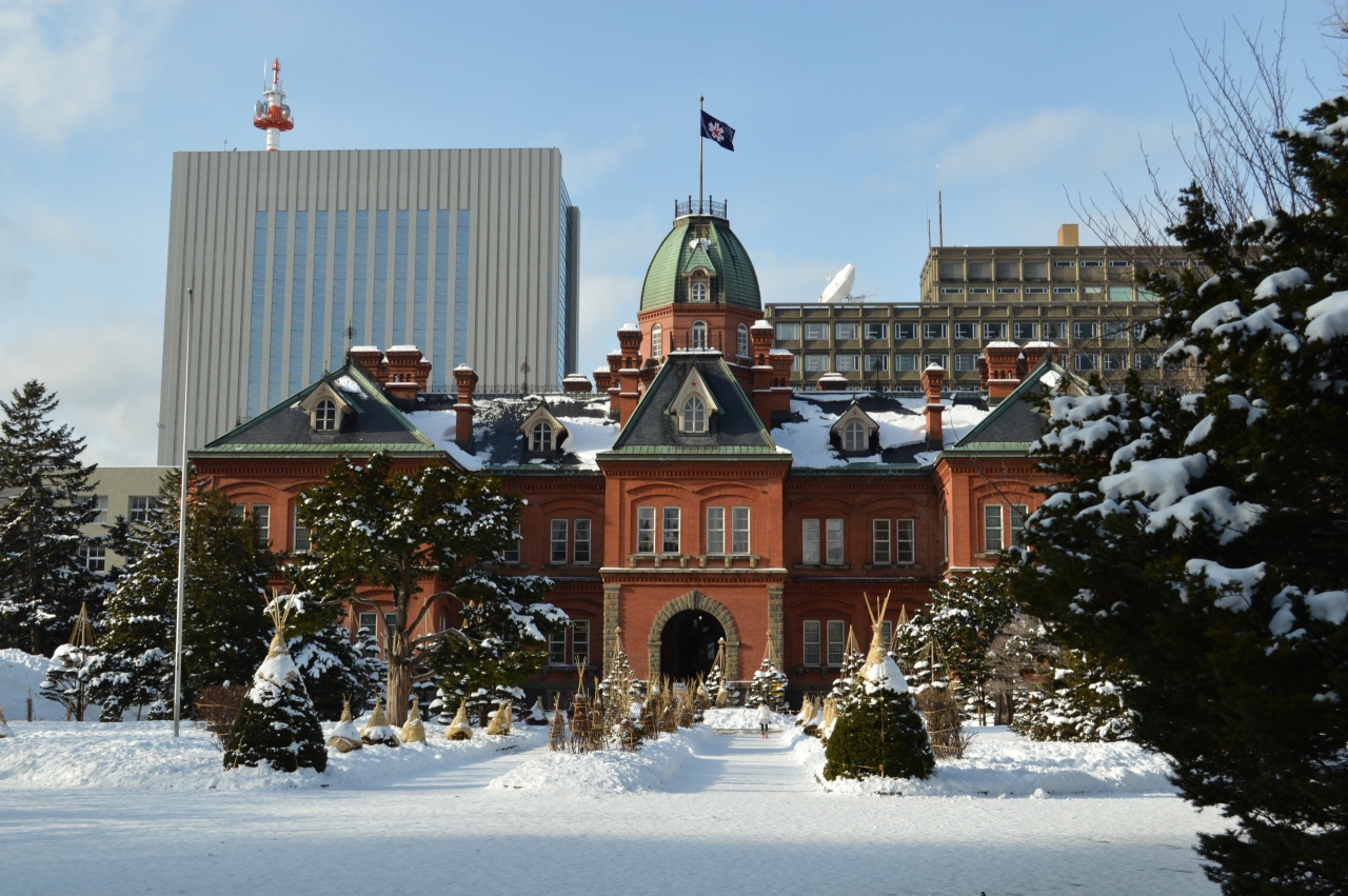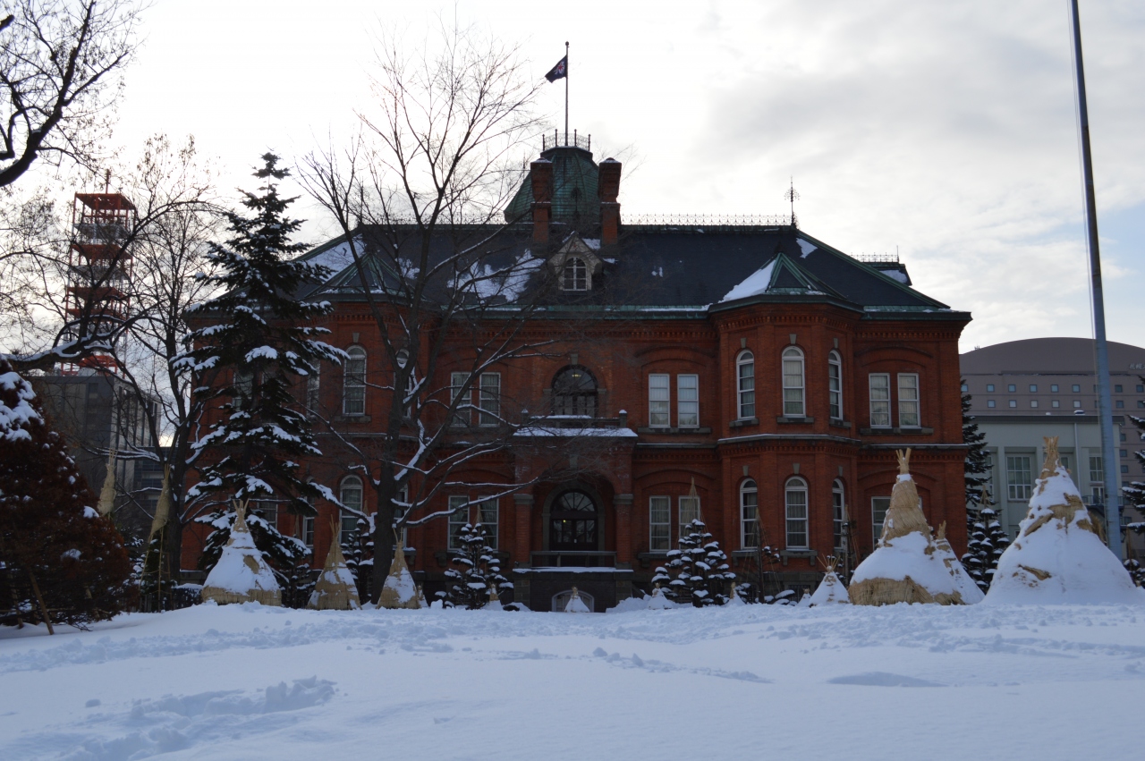 北3条西6丁目にあるので、札幌駅から地下歩行空間を大通方面に歩くと案内表示がでているので地上に出て赤れんが庁舎に到着。平日の朝10時前でしたが、観光客がけっこういました。中国の人が多かったです。れんがと雪がいい感じです。左右対称の重厚な建物は見ていて飽きません。建物正面の開拓使のシンボルであるREDSTARが印象的です。左後方の近代的なビルが景観を損ねている感があります。私はここには過去にも何回か来ているので今回は中に入りませんでしたが、時間があれば北海道の歴史がわかる資料を見てみるのもいいです。