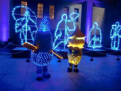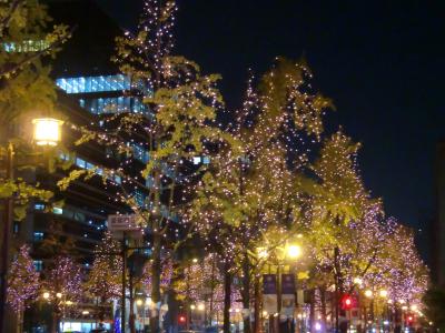 開催期間が2013/12/1(日)~ 2014/1/19(日) ですが12月6日にぶらぶらと歩いてみました。梅田から心斎橋まで地下鉄御堂筋線で行ってそこからは歩いて梅田まで帰りました。点灯は17時頃に開始で23時ぐらいまでです。場所としては大阪市庁舎、淀屋橋交差点(土佐堀通)から新橋交差点(長堀通) までです。この日は比較的混雑しておらずゆっくりと見る事ができました。昨年に行った時は大混雑でした。さて、コーラル、ホワイト、イエロー、ブルーと4色のライトが御堂筋の左右の樹に点灯されるのですが、個人的にはブルーがきれいでした。それと植込みのライトもきれいです。難を言えばクルマのライトが邪魔ですが、こればかりはどうにもなりません。市庁舎のイルミネーションはこの日は地味でした。着ぐるみがいましたけどこれは何でしょうか?記念撮影をする人が並んでいました。