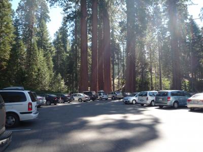 駐車場のこの景色は木と車と比較することができて、木の巨大さがわかると思...
