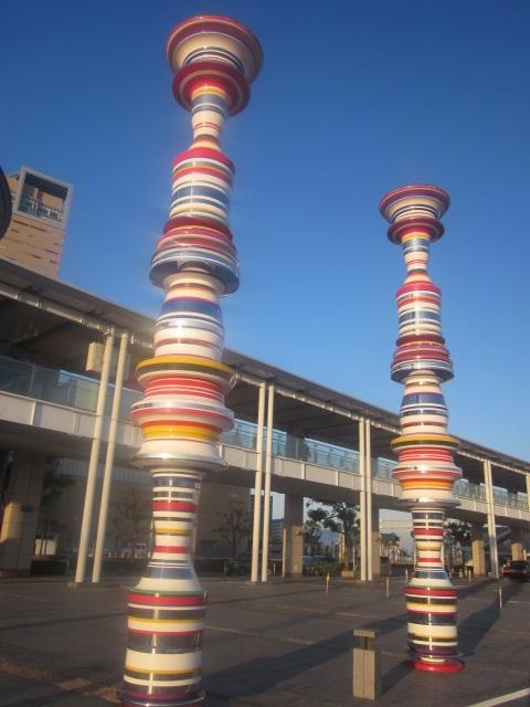 今回は、直島行きフェリーに乗船する際、約3年ぶりにこの作品を鑑賞させて頂きました。前回訪問時は曇天だったので、あまり印象に残らなかったのですが、カラフルな色合いの作品だけに、青空をバックに眺めると、これがまた凄く映えて美しさが引き立っていました。同じ作品でも、天候の違いでこうも雰囲気が変わるのか、と実感できる作品でもありますので、是非、好天時を狙って観賞してみて下さい。