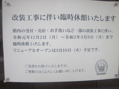 2019年12月末現在で、倉敷館と歩調を合わせるかのように改装休館中でした…。