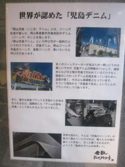 ここは4トラさんの登録が何故か・レストランのジャンルに含まれています(まあ、一応デニムまんとか、ファストフードも扱っていますけどね…。)が、デニムをメインとした洋服を扱うお店が並ぶストリートです。デニムの町倉敷(正確には児島なのかな?)らしく、質の高い商品が沢山並んでいて、目の肥えた方ですと、商品を探すのも楽しいかと思いますが、やはりそれなりにお値段は張りますので、観光途上で気軽に買う、という雰囲気ではあまりないかもしれません。お土産用としては、倉敷川を挟んで対岸の裏通り沿いに、別館として3のきゃら工房が最近オープンしましたので、そちらをご覧になる方が良いかと思います。ただ、ストリート沿いにはSNS映えしそうなフォトジェニックなスポットもありますので、記念撮影にはこちらの方がお勧めです。