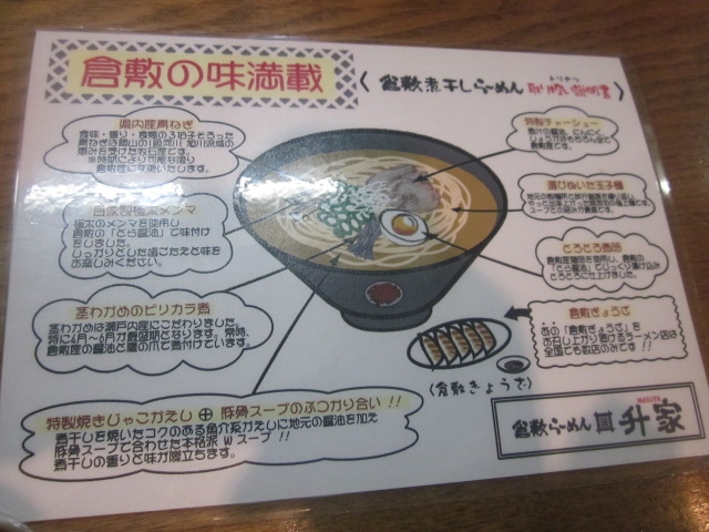 ただ、その後、次から次へとお客さんが入って来たので、それなりの人気店だなと思っていたら、実はかなりの有名店だったんですね。倉敷産の食材に拘って丁寧に作られている印象で、好感度は高いお店でした。一番人気の煮干しラーメンも750円というお値段はこれだけのこだわりの食材を使用していながら、今時のラーメンとしては合格点だと思います。- 旅行時期