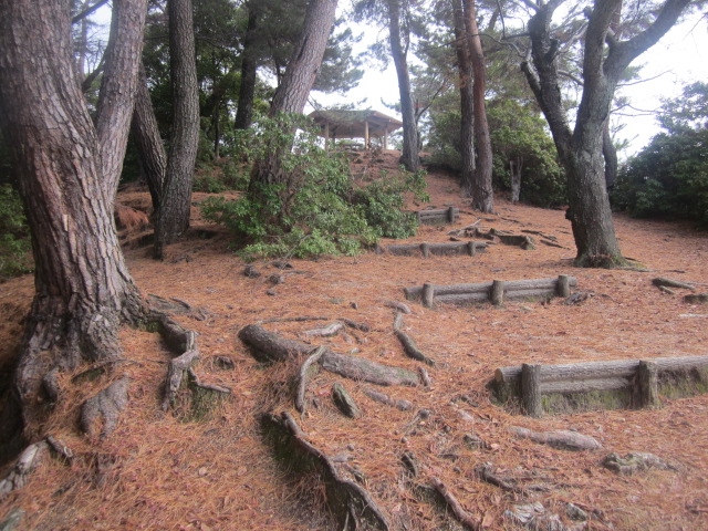 その要因として、桟橋側からはいきなりの急階段を登る必要があり、これを目の当たりにしてげんなりしてしまう方が多いからなのかなと思います。ただ、急な箇所はそれ程距離は長くありませんし、少し頑張れば、桟橋の至近とは思えない、歴史ロマンを偲ぶのには最高の静寂な空間が待っていますので、是非、億劫がらずに足を運んでみて下さい。城跡というよりは、現在では、要害山という名前の方が有名で、三角点も設置されています。桟橋側の展望は開けていませんが、反対側の街並みは美しく望むことが出来ます。- 旅行時期