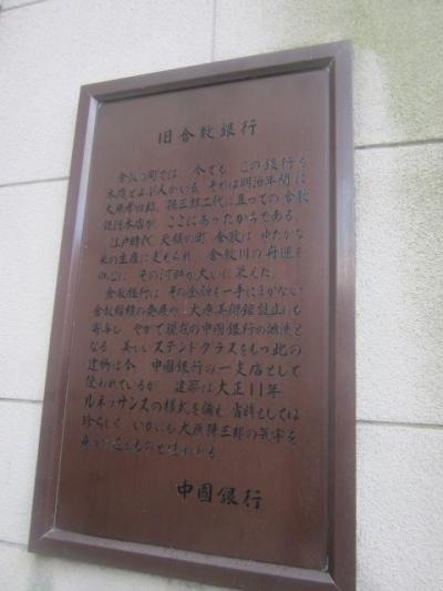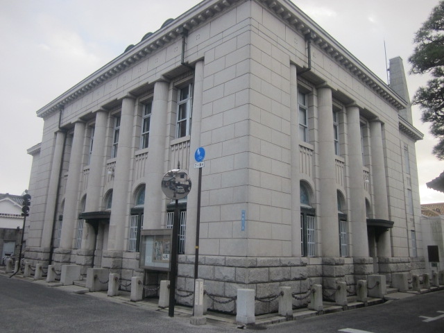 倉敷駅から美観地区に至る途上で、本町通りを経由して歩いていきましたが、倉敷川に向かう交差点付近で見かけたのがこちらの旧銀行建築でした。