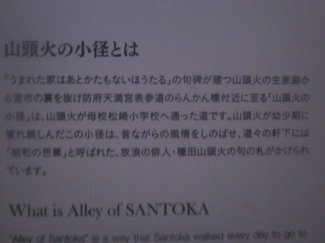 私は徒歩でアクセスしましたが、JR防府駅から生家跡までは徒歩10分程度、そのまま小径を歩くと防府天満宮傍の山頭火ふるさと館まで行くことが出来ますので、こちらの施設や天満宮見物も併せて楽しまれるのがお勧めです。