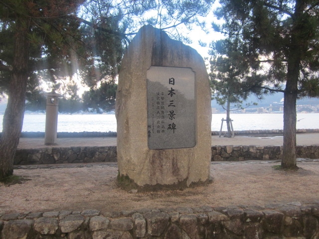 今でこそ、日本全国津々浦々、沢山の風光明媚な観光地があり、情報検索などもネットを通じて簡単にできる時代ですので、今更、日本三景、と言われても、ピンとこない節もあるかと思いますが、やはり、早い時期から、”日本で一番美しい三大景勝地”として認知されていた宮島という観光地のことを、こういう碑があると改めて再認識させられます。様々な蘊蓄云々を抜きにしても、ここに来て、古来からの日本の美しさを感じる宮島旅のプロローグとされると良いかなと思います。