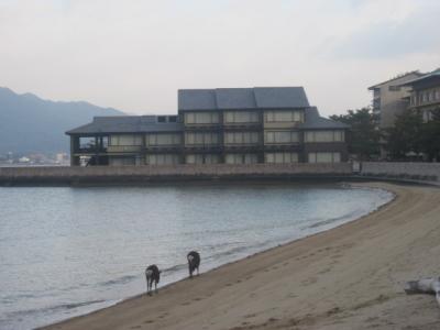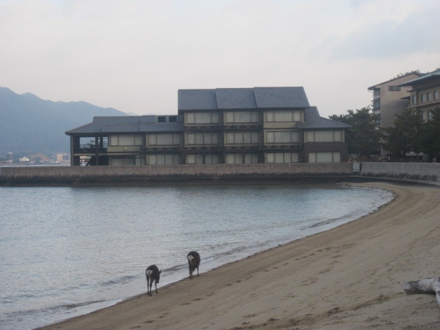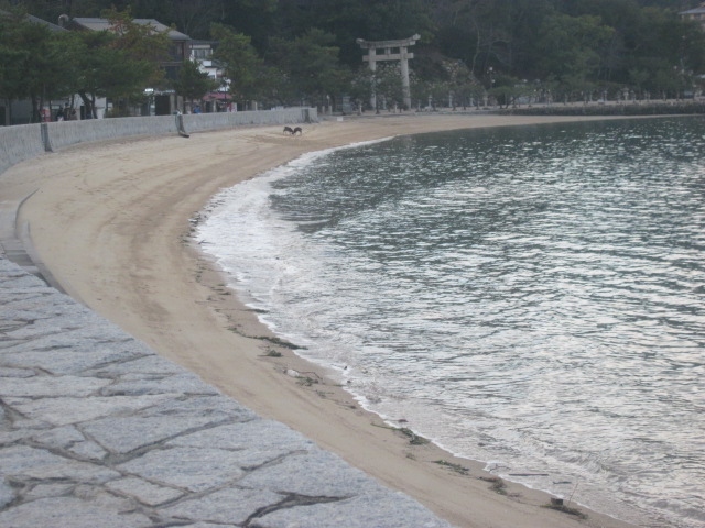 今回は早朝の宮島フェリー(JR)を利用しての宮島観光を楽しみましたが、島に上陸後最初に訪れたのがこちらの浜でした。