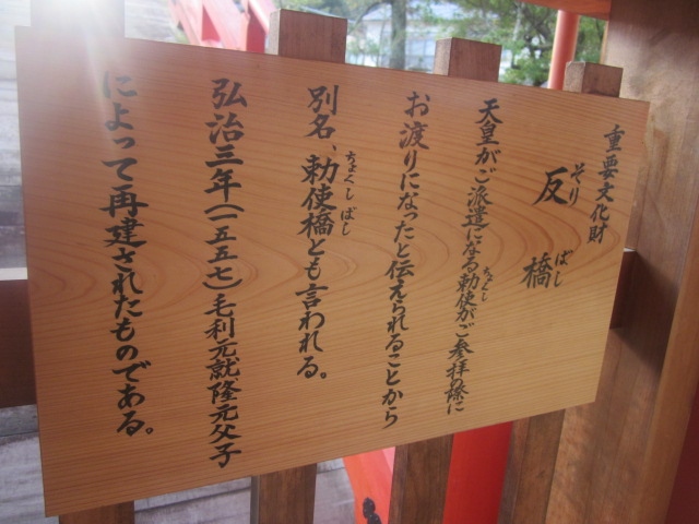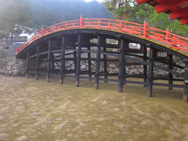 現在は橋上を通過することは出来ず、直近では厳島神社内の回廊から眺めるだけとなりますが、どの角度から眺めても、これだけ丸みを帯びた鋭角の橋はなかなか見応えがあり、その美しさに魅了されてしまいました。直近からは勿論、回廊などを配しながら、お好みの角度を探して、厳島神社らしい一枚を撮影してみて下さい。