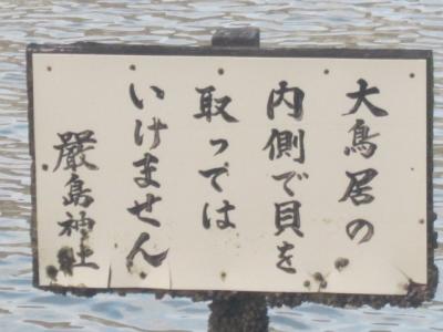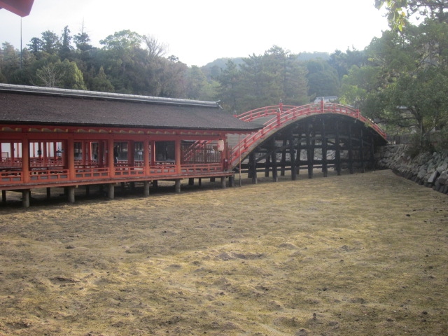 ボォーッと歩いていると見逃しがちですが、この神社の魅力は干満状況に応じた自然景観の風情などにもありますので、本当は満潮時・干潮時双方を訪れて、その違いを廻廊伝いに楽しんでみる、というのが、この神社の観光スタイルとしては理想かなと思います。