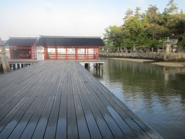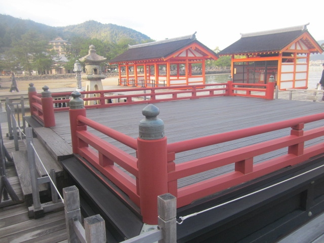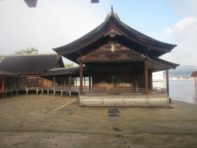 能舞台として、海上に設置されているのは日本で唯一(世界でも?)とのことで、その特異性にも注目が集まる、世界遺産・厳島神社を代表する建造物の一つですので、色々な角度からその風情を楽しんでみて下さい。