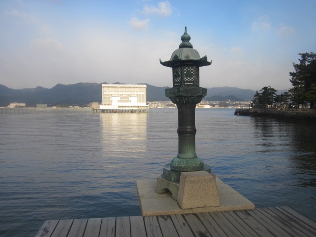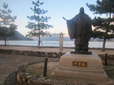 この像は宮島桟橋のすぐ近くにあり、宮島観光を始める際の最初に訪問するのに良いスポットだと思います。私は早朝の宮島フェリーで島に上陸後、まずこちらを眺めましたが、優雅に右手を上げて、”片側ジュディーオング(?)”みたいなデザイン(表現力が乏しくてすみません)がとても秀逸で、海の景観と非常にマッチしていました。