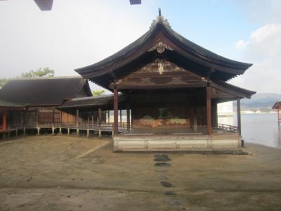 ここもある意味、海上に建てられた厳島神社らしい風情を堪能できるところで、直近まで立ち入ることは通常は出来ませんので、観光客的には眺めるだけとなりますが、朱色が印象的な厳島神社内の建造物としては、ここはシックな黒っぽい建物で、その対比がまた心に残ります。