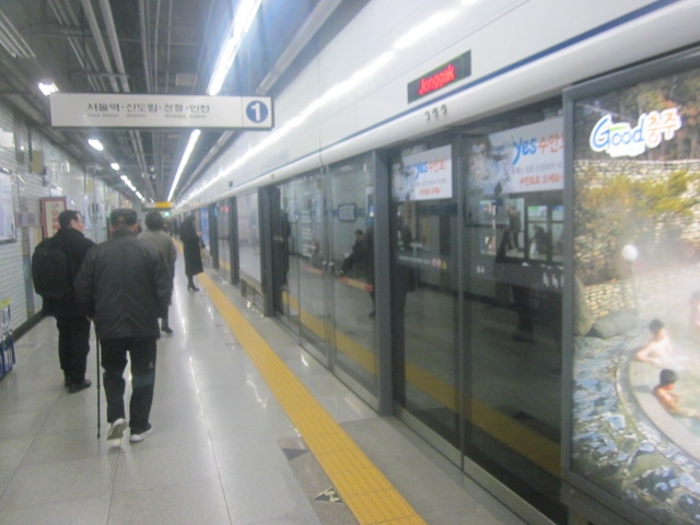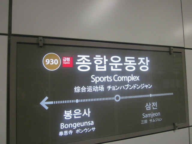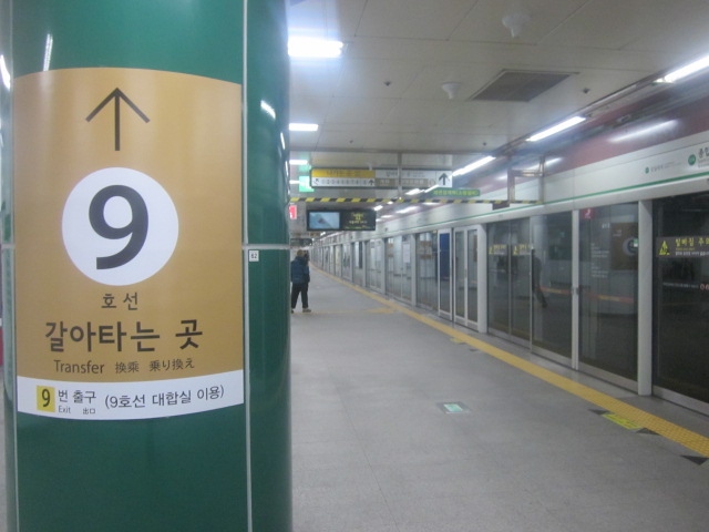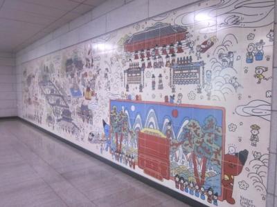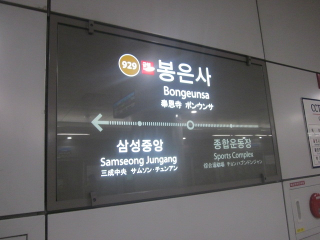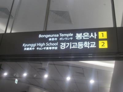 今回は、同名のお寺を参詣するためにこの駅を利用しました。比較的新しい路線である9号線沿いの各駅は、どこも新しさに満ち溢れた風情ですが、この駅もその例に漏れず、清潔感の溢れる居心地の良い駅で、9号線各駅でよく見られる、立派な美術作品なども展示されていて、お寺の参詣前のテンションを上げることができました。