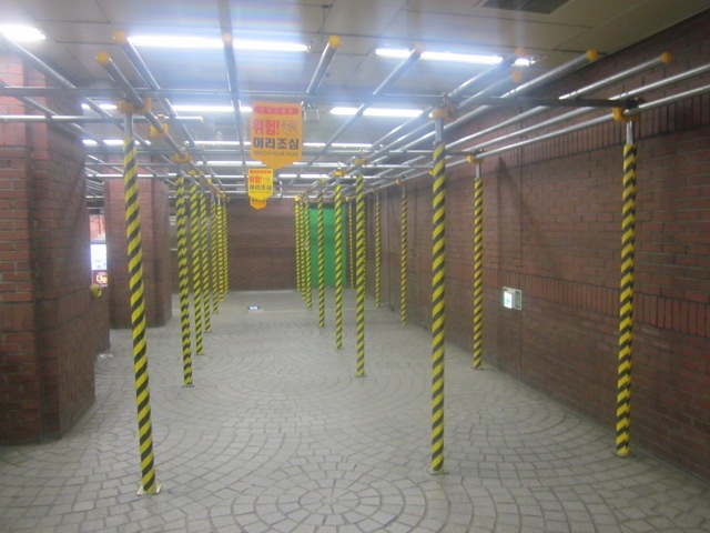年々路線が拡充していくソウルの地下鉄の中で、なかなか歴史的な風情を感じる駅は少なくなりつつありますが、この駅の二号線側のレンガが並ぶエリア等は、歴史的な香りを感じる貴重な駅だと個人的には気に入っている部分もあって、今回は、随所で工事の進行を物語る黄色と黒色のポールが立っていて、動線的には歩き辛い箇所も多かったです。