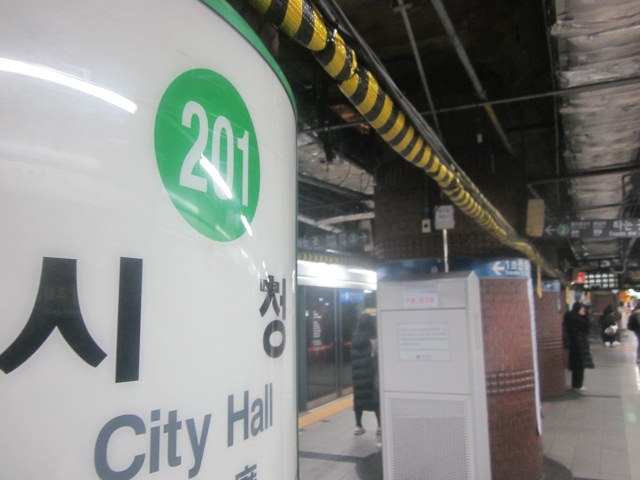ソウル都心部にある代表的な地下鉄駅の一つで、乗り換えや都心部の各観光地へのアクセスに何かと便利な駅ですが、2019年12月現在の風情としては、やはり、特に2号線側の工事中の箇所の多さに驚かされました。