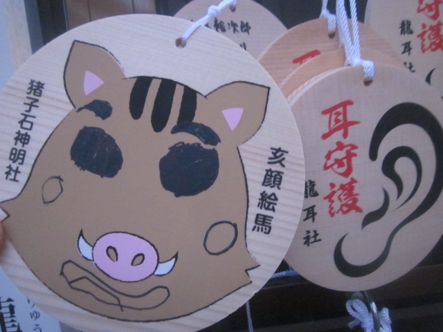 その3日後に再訪してみると、流石に参拝客はまばらで、本来の猪子石神明社らしい静かな時間が流れていましたが、お守りや絵馬などは各種まだ販売されている状況でした。前年の猪ブーム(?)をそのまま継承している感じで、猪に因んだ各種御守りなどの宣伝なども活発に行われている風情が、数年前とは大きく変わったのかなと思います。