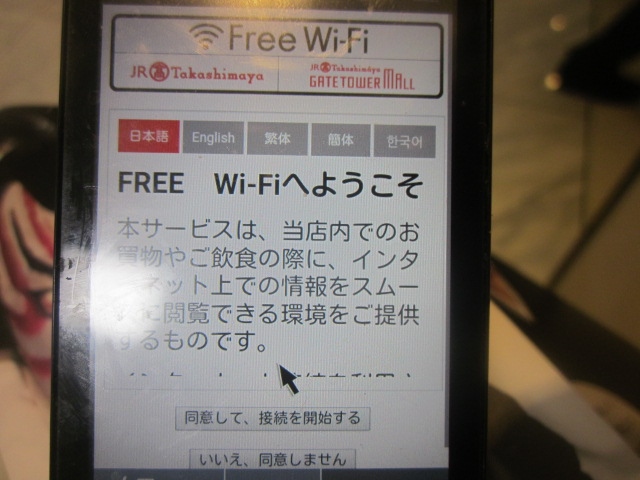 10階催事場の脇にて、電波を検索した所、タカシマヤの無料Wifiを発見しました。利用は初めてでしたが、特に初期登録などの必要もなく、利用規約に同意するのボタンをクリックするだけで簡単に接続することが出来ました。ただ、場所によっては、接続が重くなる印象がありましたので、積極的にWifiを使用したい方は、電波状況の良いエリアなどを案内所などで照会されてから利用されるとより良いかと思います。- 旅行時期