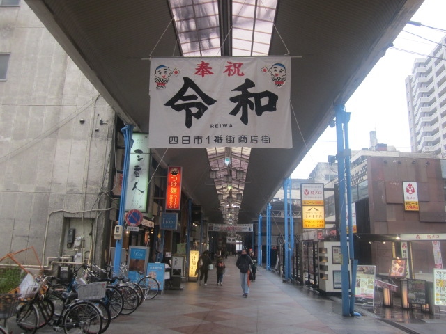 近鉄四日市駅前からJR四日市駅方面に向かって中央通り沿いに続くアーケード街ですが、ここは昔ながらの風情が色濃く残っているアーケード街としては、なかなか頑張っている風情です。今回は生憎の雨模様の天候で、JR四日市駅から近鉄四日市駅に向かって歩いたのですが、やはりこういうアーケード街は、雨が降ると人が入ってくる傾向があり、ここは結構長く傘なしで歩ける区画が続くので、特に雨天時のJR⇔近鉄移動などの際は、観光客の方もここを通って、途中でお買い物やお食事を楽しんでみて下さい。因みに、近鉄駅からは、諏訪神社方面へはこのアーケードを伝っていけば、ほぼ屋根有の状態で行けるので、初詣時などに雨が降られたとしても参拝しやすい神社として覚えておかれると良いです。