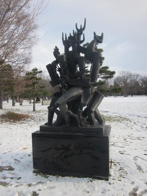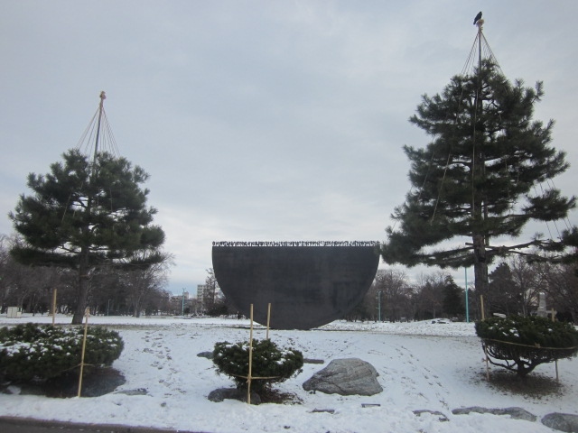 今回は、初冬の朝の常磐公園散策をゆっくりと楽しみましたが、公園内には旭川美術館もあって、特にこの施設付近には、個性的な屋外彫刻が色々と並んでいて、四季折々の風情を楽しむのに良いです。