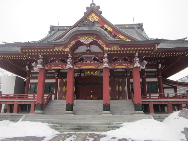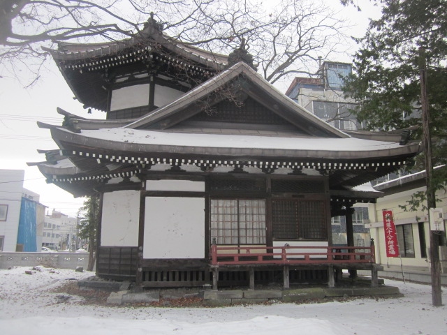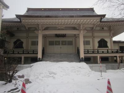 旭川市街地の五条通沿い、北海道八十八ヶ所霊場の第一・二番札所として有名な眞久寺のすぐ隣にあるのがこちらのお寺です。美しい六角堂が印象に残る眞久寺と比較すると、こちらのお寺は如何にも北海道風の歴史的な風情を感じない本堂で、正直、あまり観光に適したお寺ではないかなと思います。