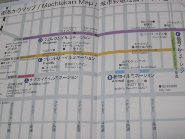 今までにも何度か観てきた旭川のイルミネーションですが、今回は、事前に専用パンフが作成されていることを知り、これを眺めながら各所を眺めたので、このイルミネーションを包括的に楽しむことが出来ました。