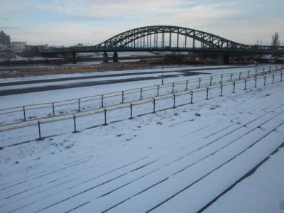 北海道三大橋の一つとして知られ、川の街・旭川のランドマークとして存在感を示している旭橋ですが、今回は、冬まつり会場の設営準備が始まる前の12月初旬に河畔を散策してみました。