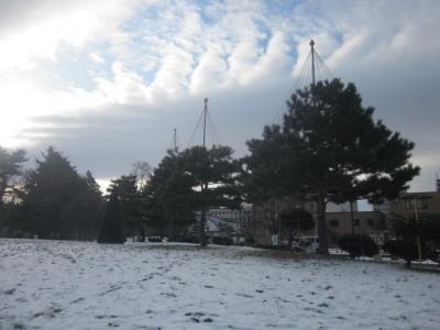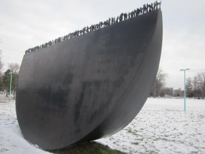 道立旭川美術館のすぐ目の前にある美術作品群の一つですが、個人的にはこの作品がとても好きで、常磐公園の散歩がてら、よく立ち寄っていくのですが、今回は12月初旬の軽く雪が積もっていた時期に訪問しました。