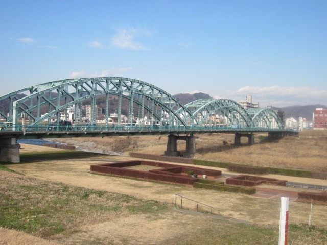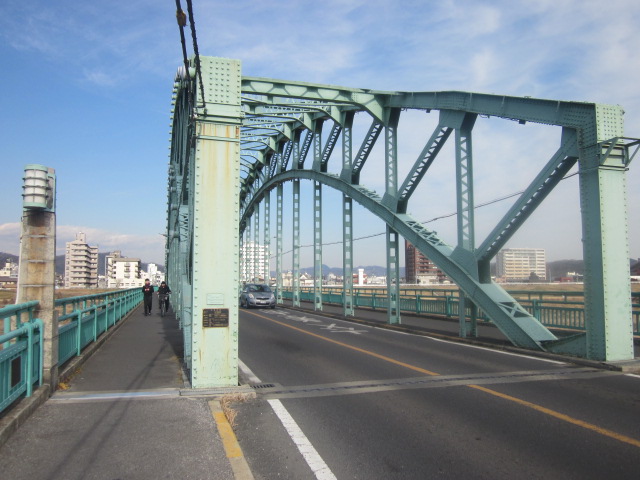 今回はひょんなことから、本当はより近かったJR足利駅ではなく、東武足利市駅から足利学校跡や鑁阿寺のあるエリアへと移動することになりましたが、”怪我の功名”的に良かったのがこの橋です。両駅は渡良瀬川を挟んで対岸にあるのですが、その途中でこの橋を渡ります。お天気に恵まれたこともあって、冬ではありましたが、川の景観をそれなりに楽しませて頂きました。ただ、やはり風が強くてちょっと寒かったです。橋の付近には風を遮るものがなく、悪天候時はちょっと歩いて渡るのは大変な橋かなという印象でした。