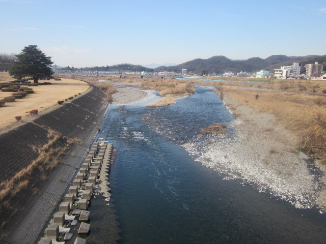 川自体は群馬栃木の両県域を流れる利根川の支流で、支流としては結構長い河川なので、地区によって雰囲気はかなり異なるかもしれませんが、私は栃木県の足利市域にてこの川を眺めました。お天気に恵まれたこともあって、特に中橋付近からは美しい川の景観を望めて大満足でしたが、冬の訪問でしたので、風は冷たくてちょっと大変に感じました。川沿いにはサイクリングロードのような道も見られましたので、自転車を携えて、或いはレンタサイクルなどで走行するのも、この辺りでは楽しい過ごし方だろうなと想像を膨らませていました。鉄道旅の場合は、JR足利駅と東武足利市駅が川を挟んで対岸にありますので、私はたまたまこの選択となりましたが、行き帰りで両方の駅を利用するプランで散策されると、必ずどこかで川を渡るタイミングが訪れますのでお勧めです。