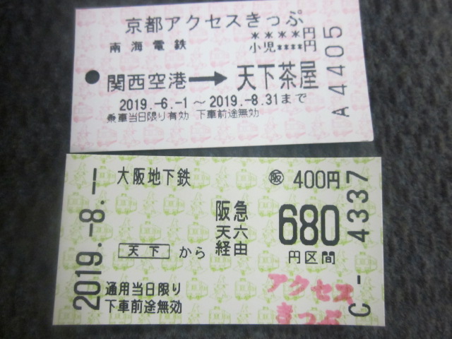 今回は、堺筋線に乗りたくて、関西空港から京都方面への移動の際に、南海・大阪メトロ・阪急の三社が連続利用できる京都アクセスきっぷ(1230円)というのを利用してみました。南海から大阪メトロは天下茶屋での乗り換えとなり、そこから堺筋線を全乗りして阪急エリアまで移動できますので、このルートだと必ず座って堺筋線を楽しめると思います。