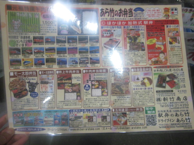 今回は、名松線旅のお供に、松阪の有名駅弁店のこちらで、本居宣長弁当を購入してみました。(商品名としては正確には弁当は旧字体表記となります。)以前は確か980円だったと思うのですが、最近値上がりしてしまったようで、1100円というお値段は、貧民にとってはかなりの贅沢でしたが、この駅弁店では、殆どがもっと高い松阪牛関連の駅弁ばかりなので、貧民の方には、こちらのお弁当か、前回ご紹介したモー太郎寿司か、選択肢はないかなと思われます。