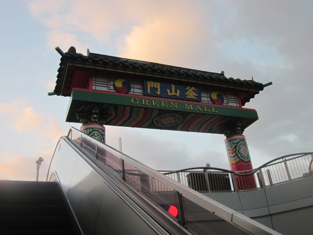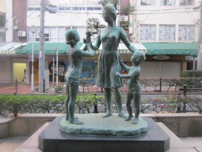 今回は短時間の下関滞在でしたが、下関駅から近い商店街としてここに足を運んでみました。駅からは高架歩道を通じて歩いていくと、立派な釜山門が設置されているので、入口はすぐに判ると思います。ここからエスカレーターでグリーンモールまでは行き来できますが、その直下にある像がグリーンモールの繁栄を願って設置された像のようで、ほのぼのとしたアングルの母子の像の姿に癒されました。