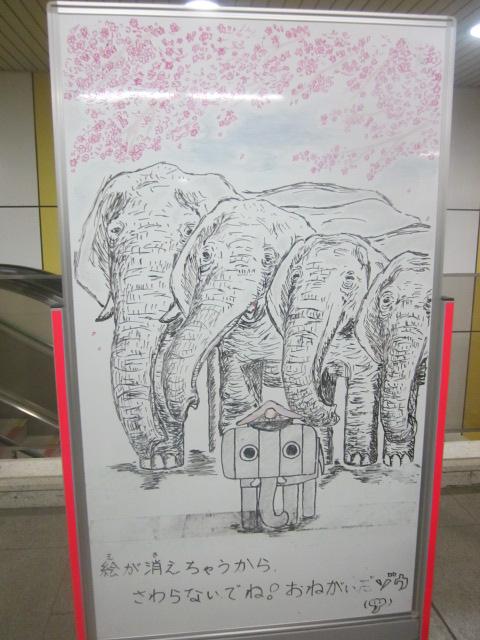 すると、期待に違わぬハイクオリティのゾウさんの絵が!これは最早、プロレベルではないでしょうか。本物のゾウさんは勿論ですが、もし地下鉄利用で円山動物園に行かれるようなことがありましたら、改札口の傍にて定期的に色々な絵柄で描かれているゾウさん(いつまで継続するのかは不明ですが…)を確認してみて下さい。- 旅行時期