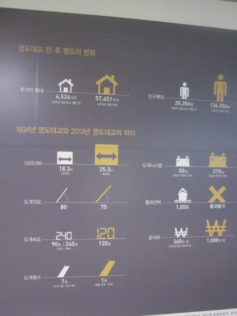 最寄り駅である都市鉄道の南浦駅の6番出口傍には、影島大橋の歴史に関してや、昔の跳ね橋と今の跳ね橋との仕様の違いなどが解説されていたりもしますので、”跳ね橋”見物の行き帰りにご覧になられると勉強になるかと思います。