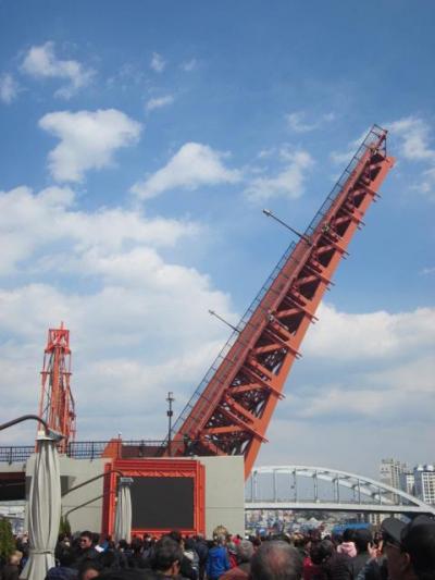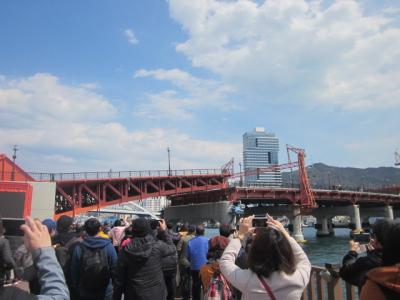 橋が”跳ねる”のは、毎日14時から14時15分にかけての時間しか現状ではありませんし、この間に、大型船舶の通過などは一切見られませんでしたので、完全に観光客向けですが、それだけ、観光地としての認知度は高く、多くの観客が押し寄せてこの時間帯は大変な混雑になりますので、良い場所でご覧になりたい方は、少し早めに足を運んでおかれると良いでしょう。- 旅行時期