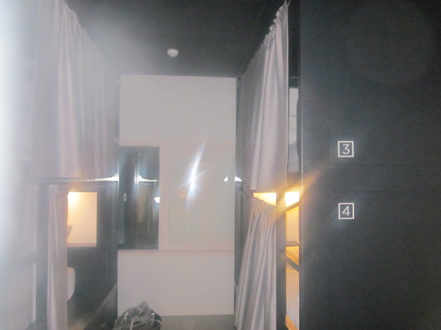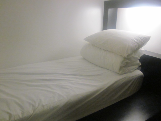 ここのドミトリーは、ドミトリーといっても通常のベッドというよりは、キャビンタイプになったレイアウトなので、上段に当たっても、モノの落下などに注意する必要がないのが利点といえます。そして、この4人部屋の中には、この手の安宿としては珍しく、ちゃんとバスとトイレがそれぞれ別室で設置されていますので、誰かがシャワーを浴びている最中にトイレに行けない、なんてこともないのが良かったです。タオル類も無料で借りられました。