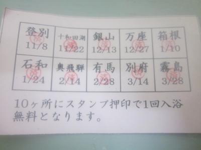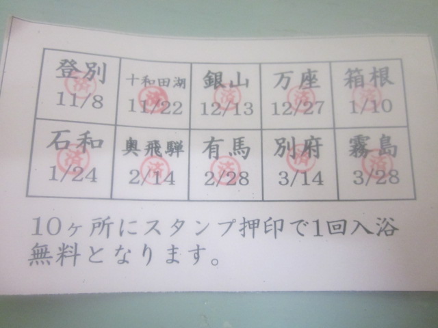 この時期の大体隔週木曜日に開催されていて、10か所全て巡ると無料になる、という企画なのですが、正直、旅行者の方には10回参加は難しいと思いますので、木曜日を狙って全国のどこかの名湯(?)入浴を楽しむ、というのが筋だと思います。今のところ、前回の消費増税の時も値上がりはなく、入浴料も220円と安いので、同じ値段で温泉(出自は怪しいけど…(^^;))に入れるタイミングで是非訪問してみて下さい。