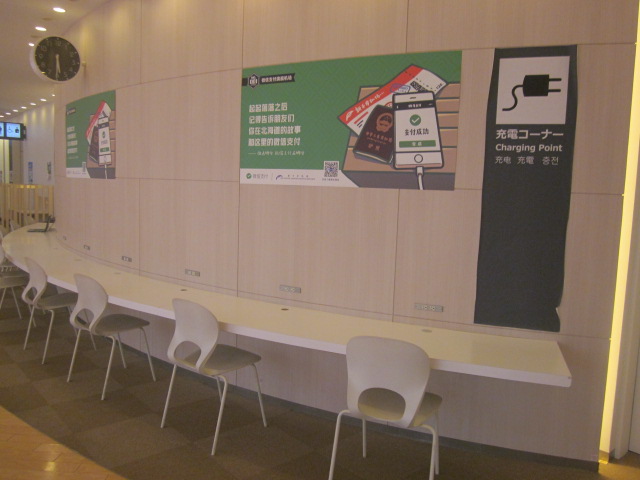 国際線の制限エリア内に関しては、更に酷い惨状で、新しく国際線ターミナルを作った際に、電源席をあまり設置しなかったことが災いしてか、今でも、搭乗ゲート前に、座席のない主としてスマホ充電を想定した電源スポットが、可動式テーブル上に無理やり設けられているような恰好の悪さです。