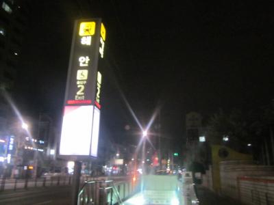 今回は大邱国際空港に21時半頃到着した後、東大邱まで向かう際に、途中、いつも空港から一番近いアヤンキョ駅では面白くないなと思って、空港前の大通りを東に向かった突き当り付近にあるこちらの駅を利用してみました。