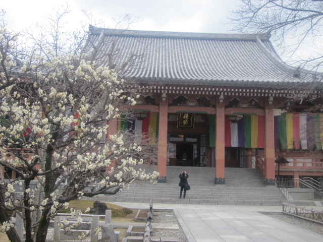 智積院の境内には講堂や庭園、宝物館など沢山の見所がある関係で、本堂に該当するこちらの金堂は、相対的に目立たない風情ですが、私が訪問した2月という時期は、丁度この金堂前付近の梅林が見事に開花している時期と合致していたたため、両者のコラボの風景をとても美しく眺めさせて頂きました。たまたまこの時期の訪問でしたが、客観的に考えても、このお寺は2~3月の訪問がベストのように感じました。