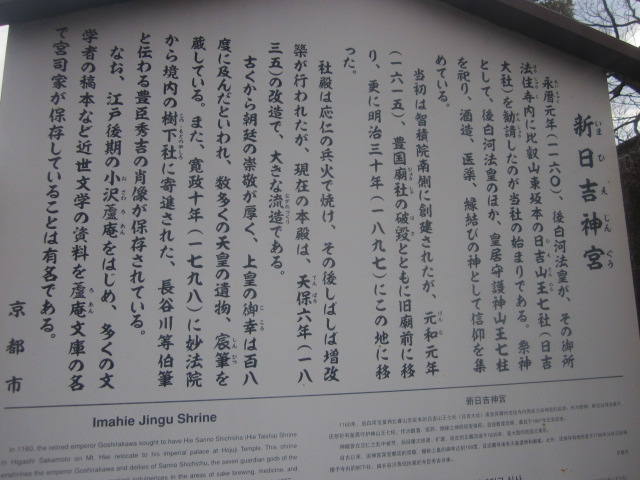 今回は智積院観光のついでに訪問しましたが、ここは智積院のすぐ北側の東大路通り沿いに神社名を示す石碑が建っているのですが、境内に関しては、智積院の裏側の少し上った所(東側)にあるので注意が必要です。でもこの神社名はなかなか読めませんよね。全国に日吉神社という名前の神社は数多く普通の読みで点在しているだけに、余計にこの読み方には斬新さを覚えます。